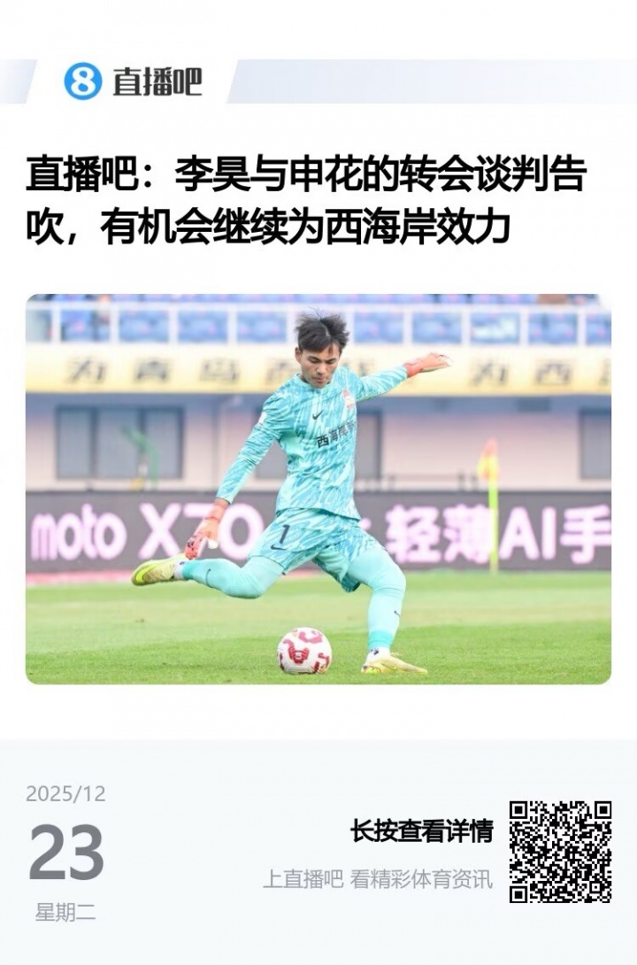 :青岛西海岸门将李昊正在与申花谈判,新赛季有望加盟